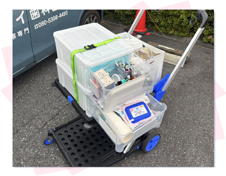 現在では、患者さまの一声からスタートした訪問歯科治療にも力を入れており、地域に根ざした治療の一環として老人ホームや介護施設での訪問歯科治療を行っています。その訪問治療のノウハウを活かして専門ドクターがご自宅に訪問して治療することも始めました。